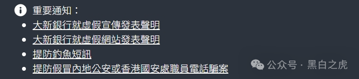 2025年8月5日,大新银行官方通过官网,微信公众号,视频号、抖音、小红书等媒体渠道连续发布严正声明。