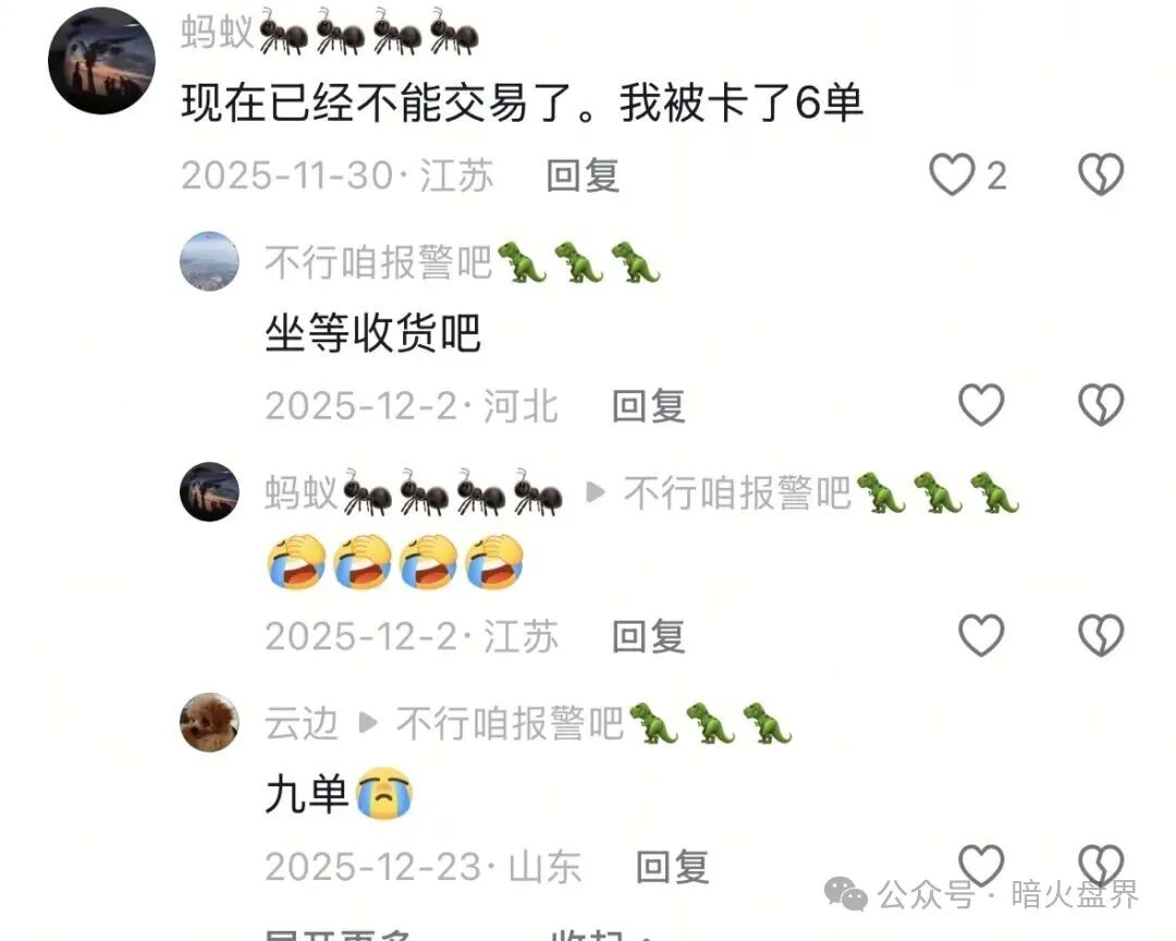 2:关于用支付宝和微信,银行参与此类项目,通常流水都是巨大,容易出现冻卡,涉及xq的风险和监管,对于此类的项目就算最后爆雷,也无法维权你只是高价买了溢价的产品接盘,那怕商家最后给你发货,你也只能自己硬吃,最后哑巴吃黄莲,有苦也说不清。