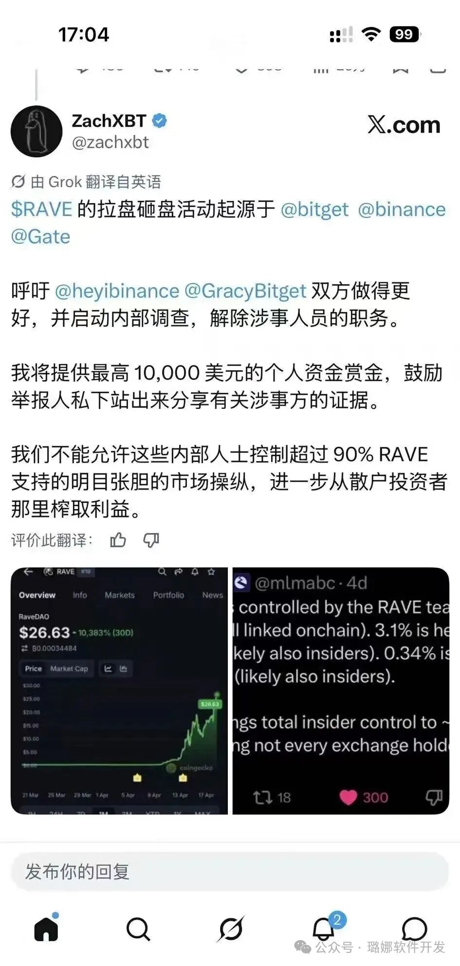 近日圈内炸开惊天消息,RAVE遭到FBI正式立案调查,消息瞬间传遍整个币圈内外。消息一出币种价格断崖式暴跌,如同泄洪一般持续下探,所有高位做多的投资者,一夜之间资产直接归零。 一时间各类真假消息铺天盖地,除了海外监管介入,Bitget等多家交易平台,也同步宣布对RAVE项目展开全面核查。