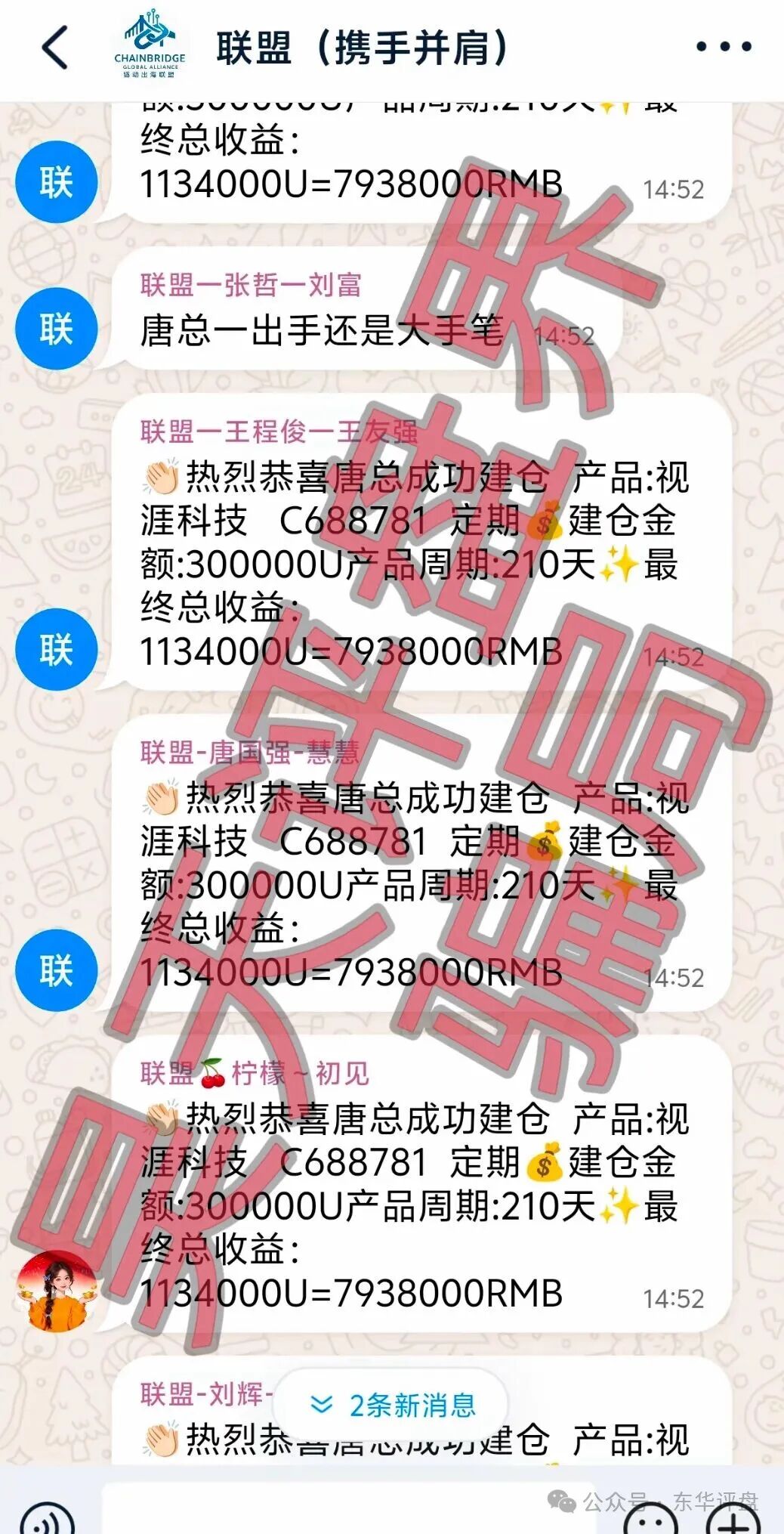 今天昊天带大家曝光一个套牌“美国信安”的ai量化骗局,群里自称叫链动出海联盟,模式就是分红类资金盘骗局,会员投资后日收益高达0.75%—1.5%不等,此盘会员有2万人左右,也已经运行了一年了,涉案资金最少过亿,也是境外柬埔寨园区搞的杀猪盘,据知情人爆料此盘也算是目前为数不多的大盘了,这个盘也是头铁,被套牌的正规公司多次出面打假,此盘还到处开工作室,拉人头填坑,昊天看了一下全网还没有人曝光,今天昊天算第一个曝光的了,模式如下,文章随便举报会曝光到底,高度预警,速度撤离!