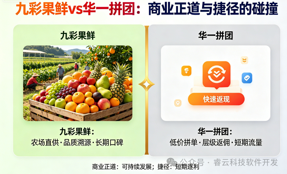 一边是曾经的“明星项目”九彩果鲜突然失联,留下一地鸡毛;一边是低调做事的华一拼团,在行业风雨中依旧稳如泰山。