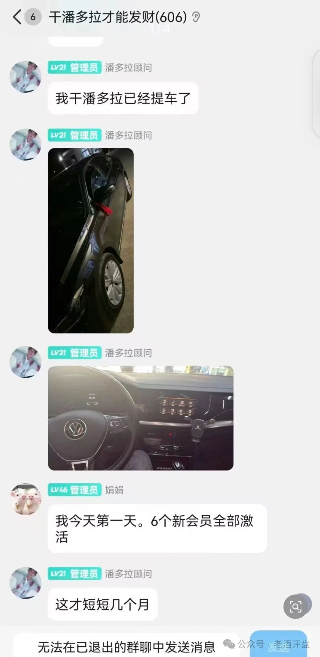 利诱不成,他们又找来一个跟班小弟,就是潘多拉社群里号称雾队长的狗腿子。这人靠着做潘多拉项目赚了钱,买了辆大众车,就开始狂妄自大,专门跑来私信谩骂、恶意威胁,还放狠话要线下约架,吹嘘自己去过东南亚背景很硬。