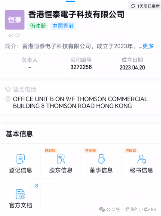 空壳公司实锤:通过公开渠道查询可知,所谓的“香港恒泰电子”不过是一家实缴资本为0、社保人数为0的“三无”空壳公司。这种公司在香港注册成本极低,唯一的用途就是为各类骗局充当“信用背书”的马甲。